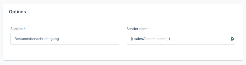 Wähle einen passenden Betreff (z.B. Bestandsbenachrichtigung) und scrolle weiter runter zu den Mail Texten.
